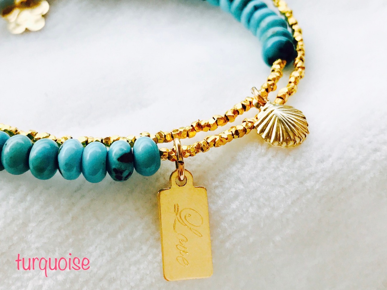 ターコイズ&カレンシルバー18金コーティングロンデル2連ブレス